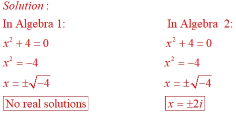 In Algebra 2, we are ready to extend our investigation of complex numbers in the area of quadratics. On this page, let's take a quick computational look at quadratics and complex numbers, with a more in-depth discussion under the topic of Quadratics.