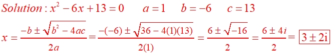 Solve using the quadratic formula: x2 - 6x + 13 = 0