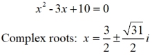 In this situation, there will be two "complex" (a + bi form) roots because there will be a negative number under the square root. Answers have imaginary number, i.