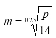 You are given the equation p = 14m0.25 and asked to express m in terms of p.