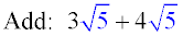 You can add square roots when they have the same index and same radicand (number under the radical). Just add the numbers in front of the radicals.You can think of it as "combining like terms".