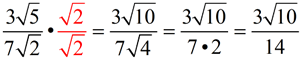 While this solution may be better, it is still not in simplest form, since it leaves a radical in the denominator. You now need to "rationalize the denominator". This simply means that we want the denominator to be a "nice" rational number, not a radical. An "integer" would be nice.