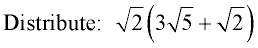 To multiply square roots, multiply under the radicals and multiply any value in front of the radicals. Simplify answer if possible.